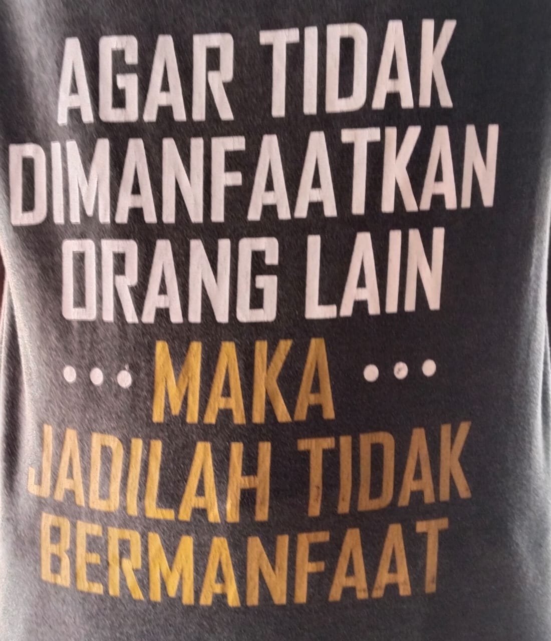 Kalimat di kaos itu seperti cermin bagi zaman ini.