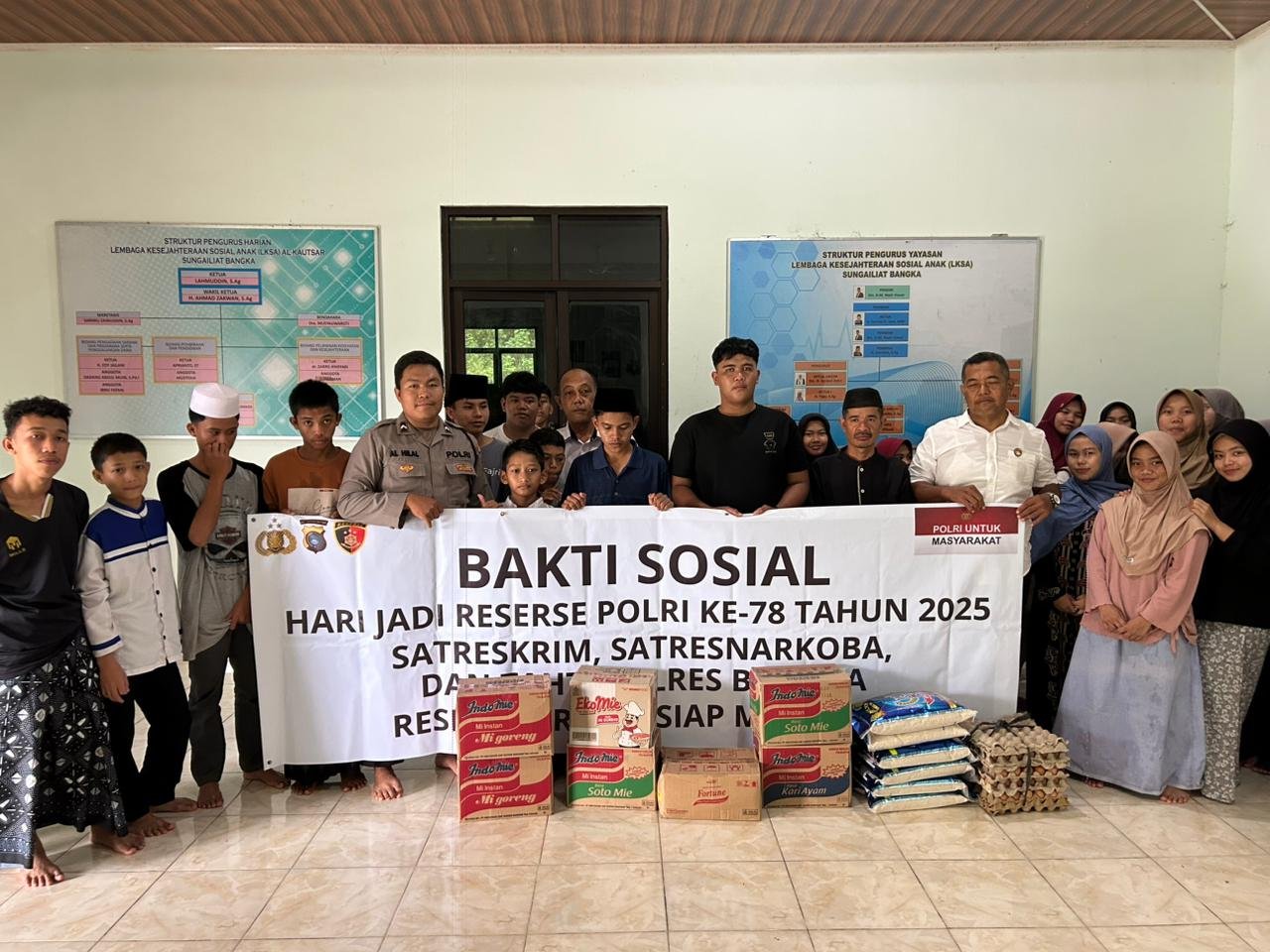 BentalaNews Bangka, Sungailiat β Dalam rangka memperingati Hari Jadi Reserse ke-78 tahun 2025, Sat Reskrim, Sat Narkoba, dan Sat Tahti Polres Bangka melaksanakan kegiatan bakti sosial di Panti Asuhan Al Kausar Sungailiat, Minggu (7/12/2025).