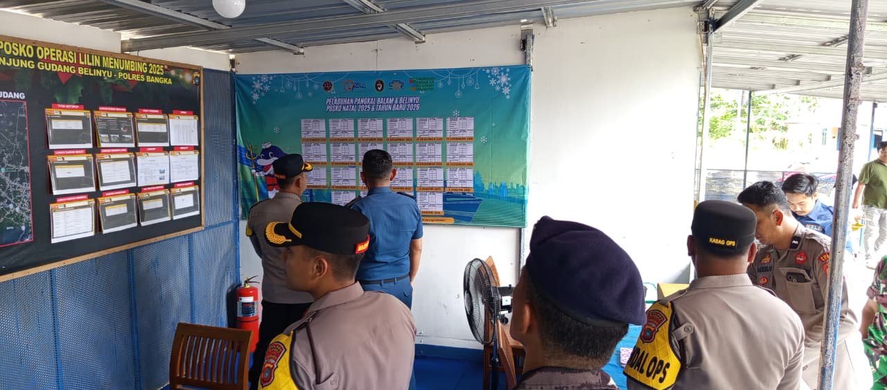 BentalaNews Bangka — Dalam rangka memastikan kesiapsiagaan personel serta kelancaran pelayanan kepada masyarakat, Kapolres Bangka bersama Pejabat Utama (PJU) Polres Bangka kembali melaksanakan pengecekan Pos Pelayanan Pengamanan (Pos Pam) di wilayah Tanjung Gudang, Kecamatan Belinyu, Kabupaten Bangka, Jum’at (26/12/2025.