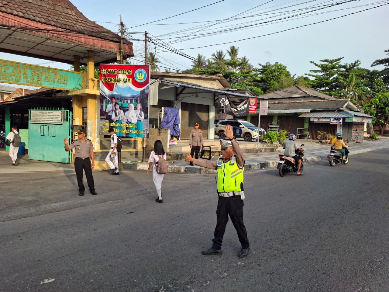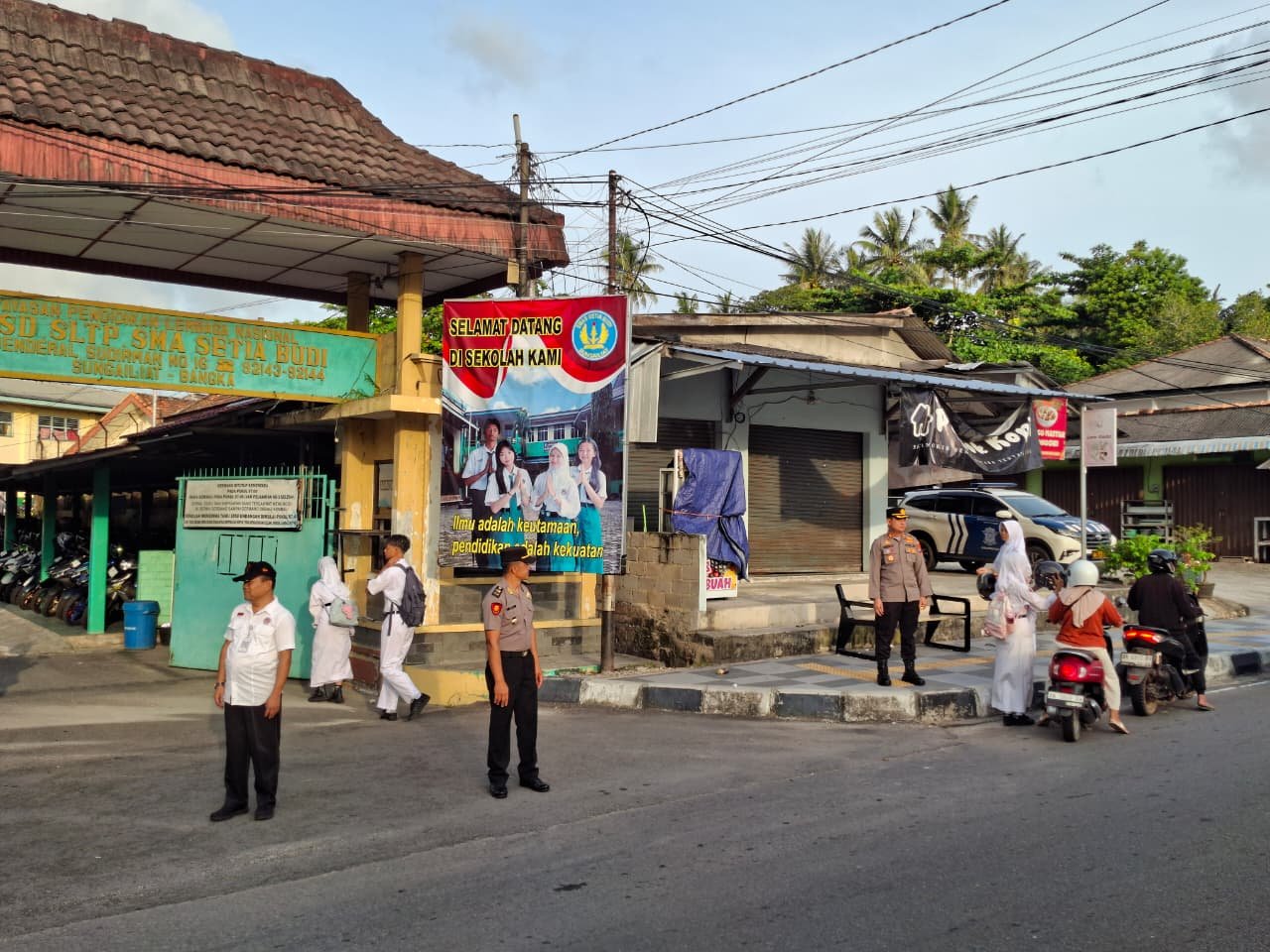 Personel Polres Bangka dan jajaran Polsek disiagakan di sejumlah titik strategis seperti persimpangan jalan, depan sekolah, pasar, dan pusat keramaian.