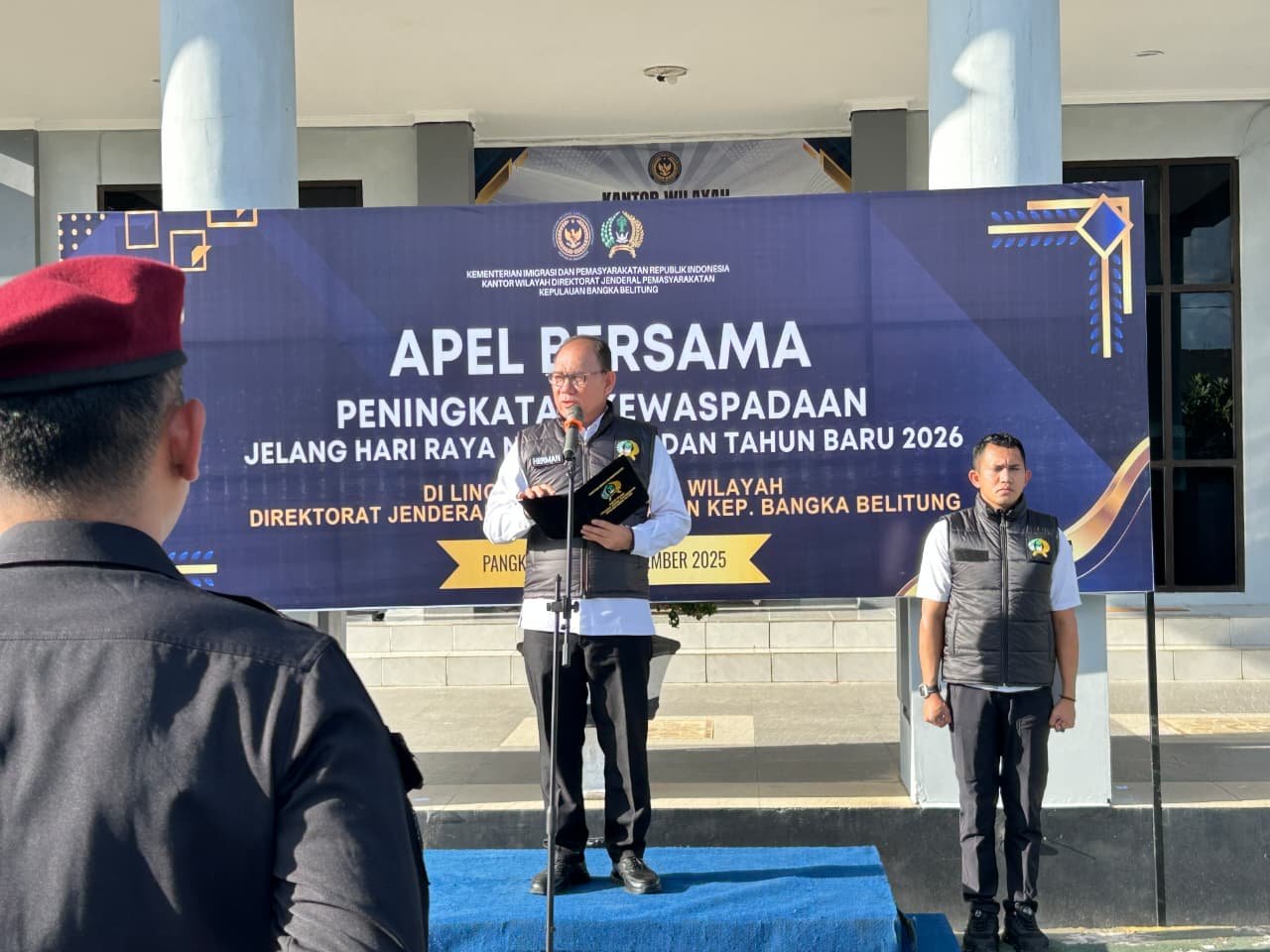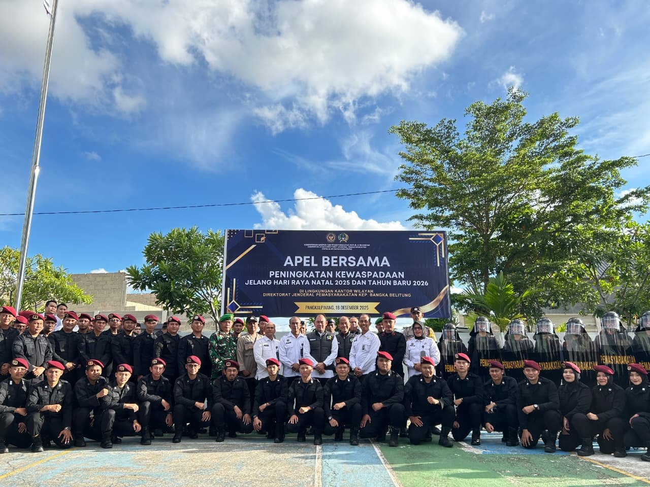 BentalaNews Pangkalpinang, Info_Pas- Menjelang perayaan Hari Natal dan Tahun Baru (Nataru) 2025/2026, Kantor Wilayah Direktorat Jenderal Pemasyarakatan Kepulauan Bangka Belitung menggelar Apel Siaga Peningkatan Kewaspadaan bersama seluruh Unit Pelaksana Teknis Pemasyarakatan dan Stakeholder terkait, Kamis (18/12).
