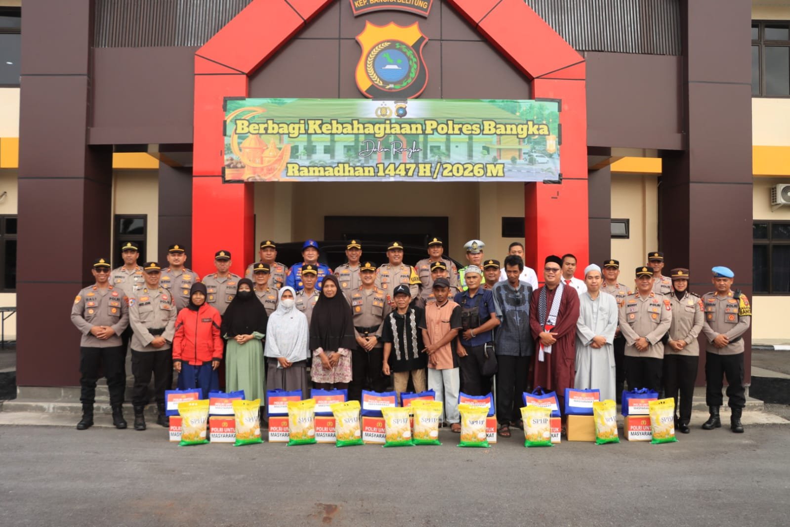 BentalaNewsBANGKA — Kepedulian terhadap masyarakat terus ditunjukkan jajaran Polres Bangka melalui kegiatan sosial bertajuk Polres Bangka Berbagi Kebahagiaan. Kegiatan tersebut dilaksanakan di Mapolres Bangka , Selasa (24/2/2026), dengan melibatkan seluruh unsur pimpinan dan personel Polres Bangka.