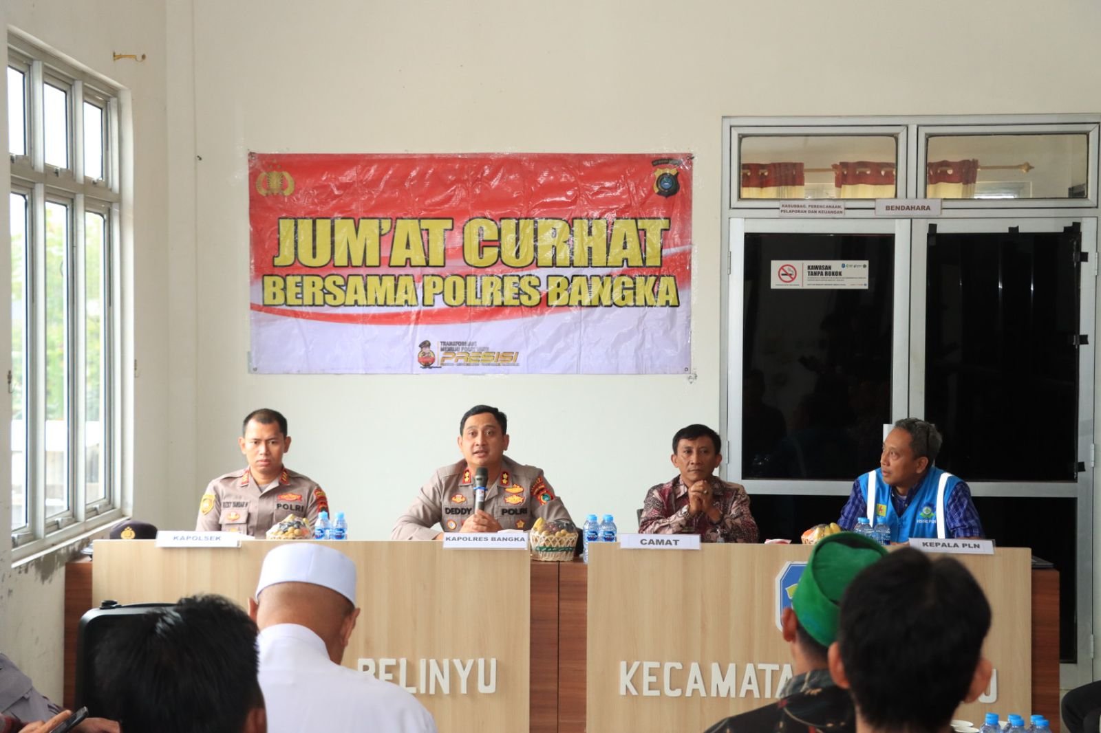 Kapolres Bangka AKBP Deddy Dwitiya Putra mengatakan bahwa kegiatan Jumat Curhat merupakan salah satu program prioritas Polri untuk mendengar langsung aspirasi masyarakat serta memperkuat hubungan antara polisi dan warga.
