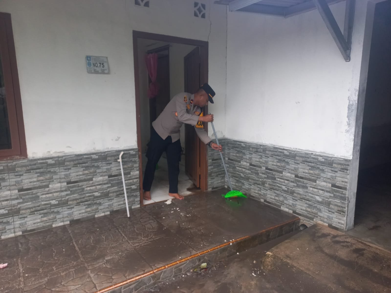 Bangka — Sebagai bentuk kepedulian terhadap masyarakat yang terdampak bencana, jajaran Polsek Pemali bersama Kepala Desa Air Ruai turun langsung membantu warga membersihkan rumah yang terendam banjir pada Jumat (12/12/2025)