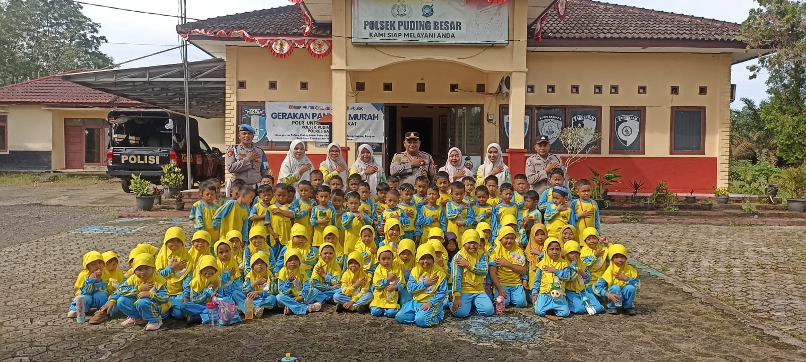 BentalaNews Bangka, Puding Besar – Polsek Puding Besar menerima kunjungan outing class anak-anak RA HADIQOTUL AMIEN Desa Puding Besar, Kamis (13/11/2025).