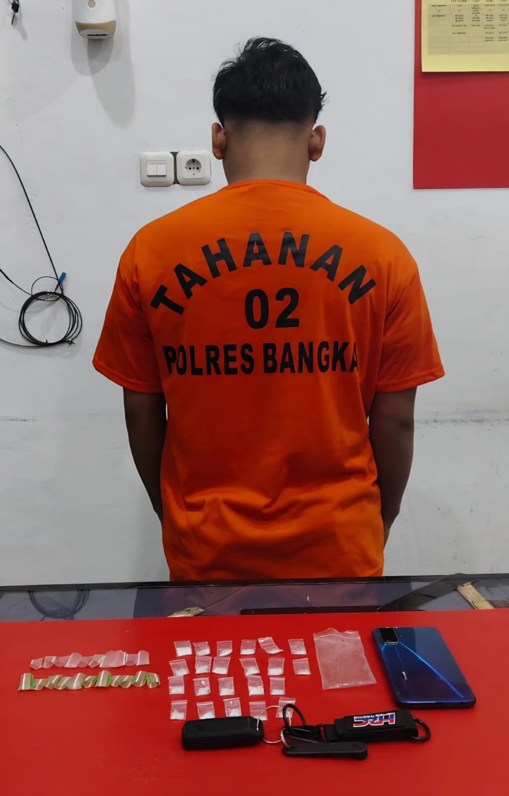 BentalaNewsBANGKA — Satuan Reserse Narkoba Polres Bangka kembali berhasil mengungkap kasus tindak pidana penyalahgunaan narkotika di wilayah hukum Polres Bangka.Seorang pemuda berinisial F (21) diamankan petugas bersama sejumlah barang bukti yang diduga narkotika jenis sabu.